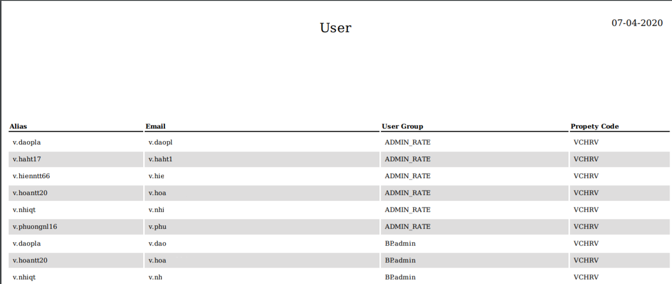 Sau khi thực hiện Add User và chọn Nhóm User/ User Group, hệ thống sẽ hiển thị danh sách các account: ![]() Click vào Email User >> phần mềm hiển thị màn hình như sau: ![]() (1) Thực hiện Add thêm Property cho User (2) Mặc định các chức năng sẽ được bật tương ứng khi tạo Nhóm Phân Quyền/Group. Người dùng vẫn có thể điều chỉnh Bật/Tắt các tính năng mà User được phép sử dụng. o Bật: User sẽ xem và thao tác được o Tắt: User sẽ không xem và thao tác được o Ở mục Quyền/Role, sẽ được phân loại 2 Quyền Nhân viên/Staff và Quản lý/ Manager ![]() (3) Để Thực hiện add thêm User Group cho User >> click vào “Add User”, thao tác tương tự như các B1, B2, B3. ![]() |