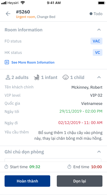 ![]() | ![]() Hoàn thành = INSPECTED | ![]() Dọn lại = DIRTY |