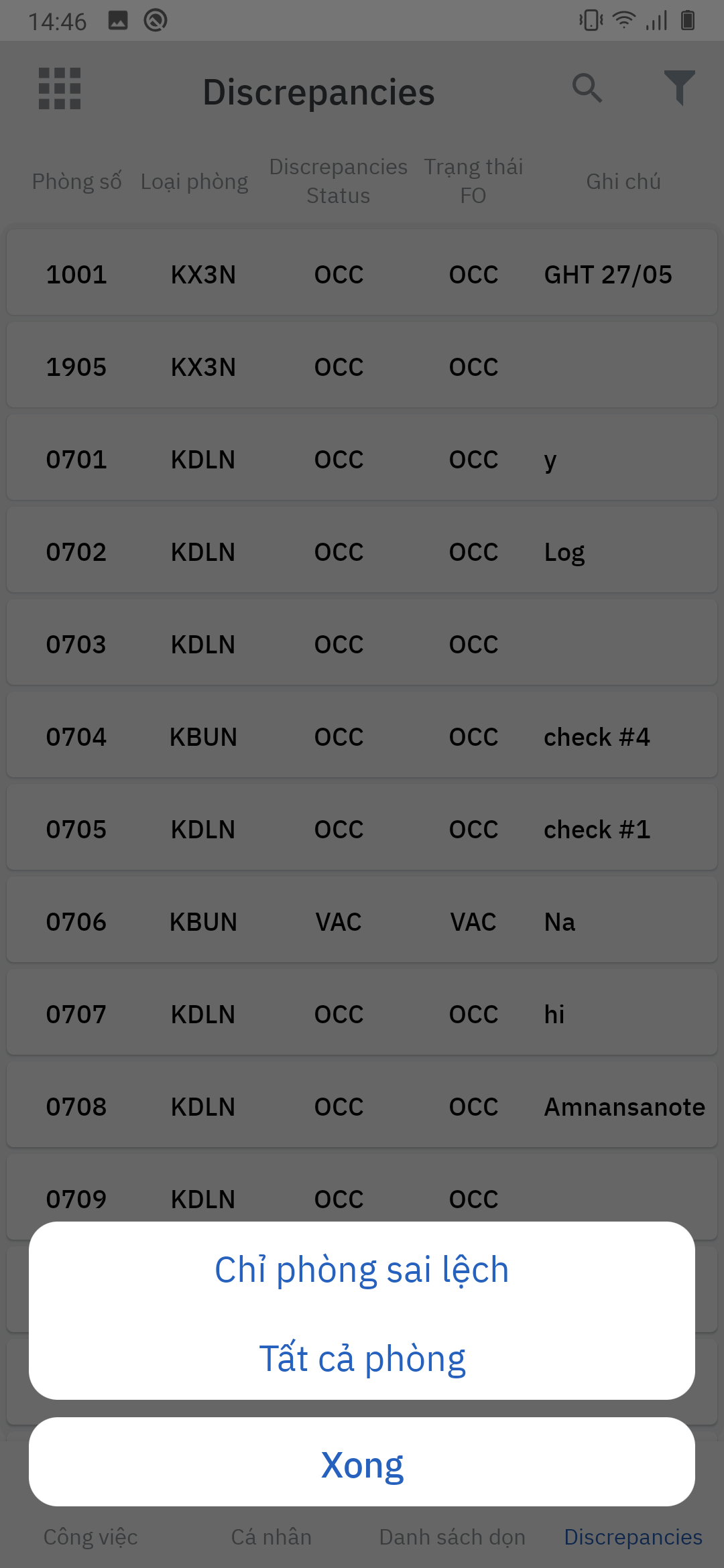 Kiểm soát sai lệch tình trạng phòng/Room Discrepancy