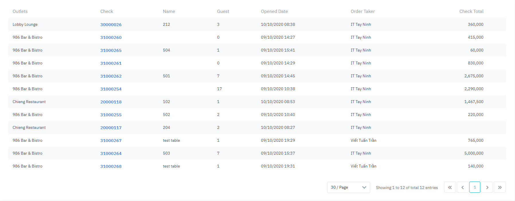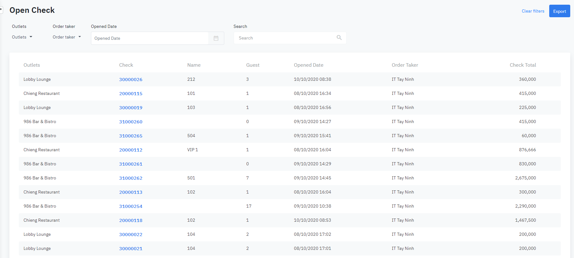 Log in - Food and Beverage - Reports - Open Check |