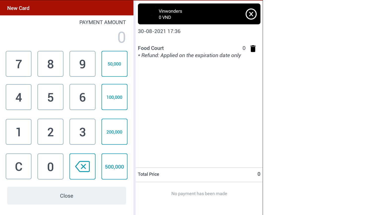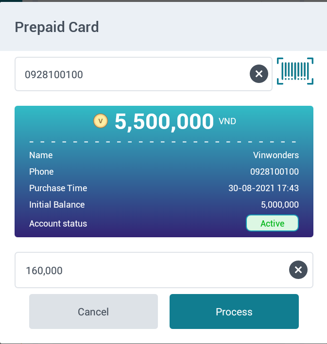 Ở thanh công cụ, chọn Prepaid card/Thẻ trả trước ![]() Màn hình “Thẻ trả trước”: ![]() |