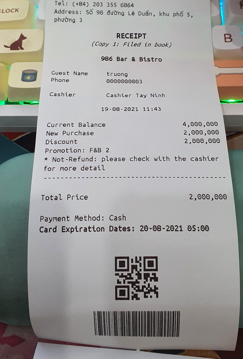 ![]() 2. Check Card: chọn “Check Card”![]() Chọn function “Check card” quét mã trên bill ![]() Sau đó thẻ sẽ hiển thị ![]()