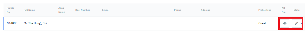 Active/Hoạt động: Chọn để xem các hồ sơ khách hàng đang hoạt động Inactive/Không hoạt động: Chọn để xem các hồ sơ khách hàng đang không hoạt động [Result] – Kết quả tìm kiếm![]()