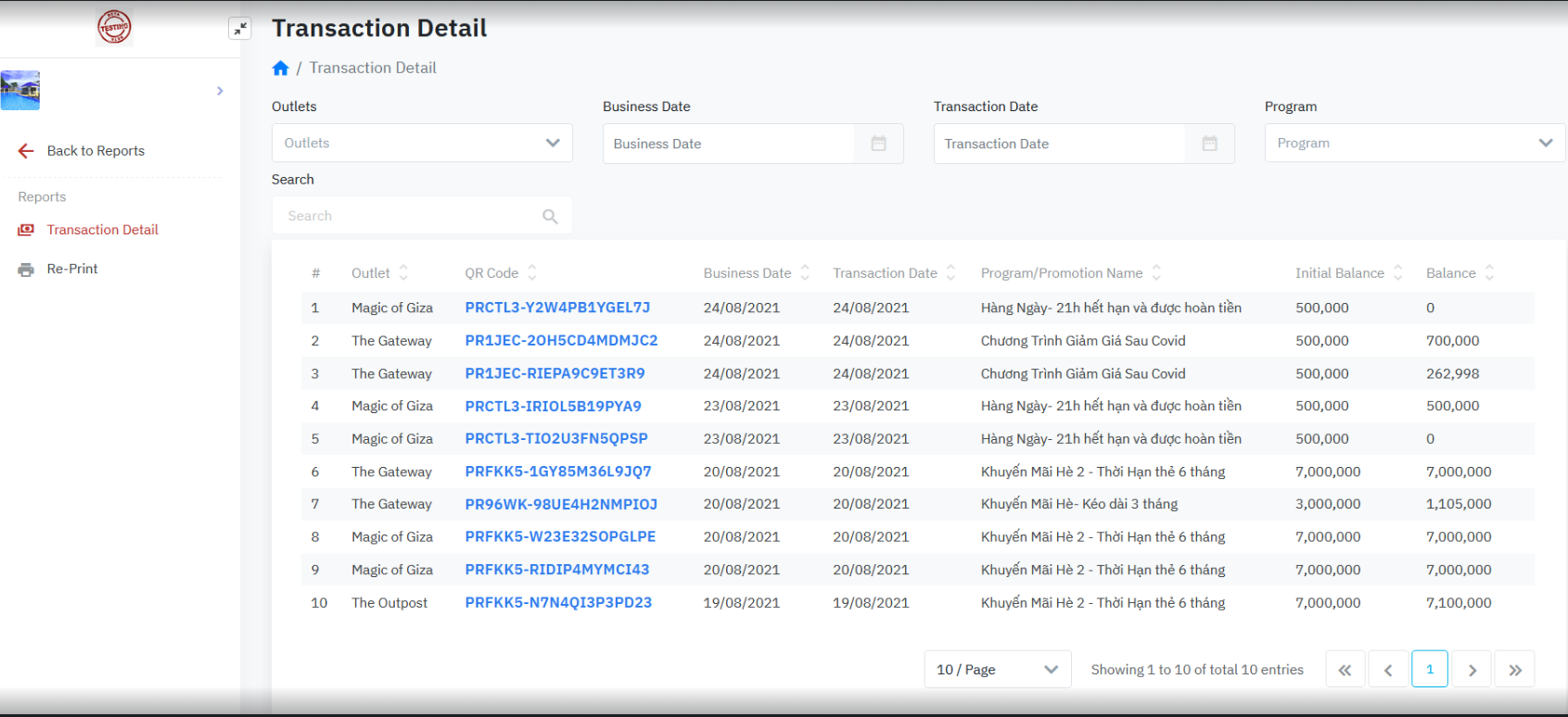 Prepaid Card (Thẻ trả trước) - Reports (Báo Cáo) |