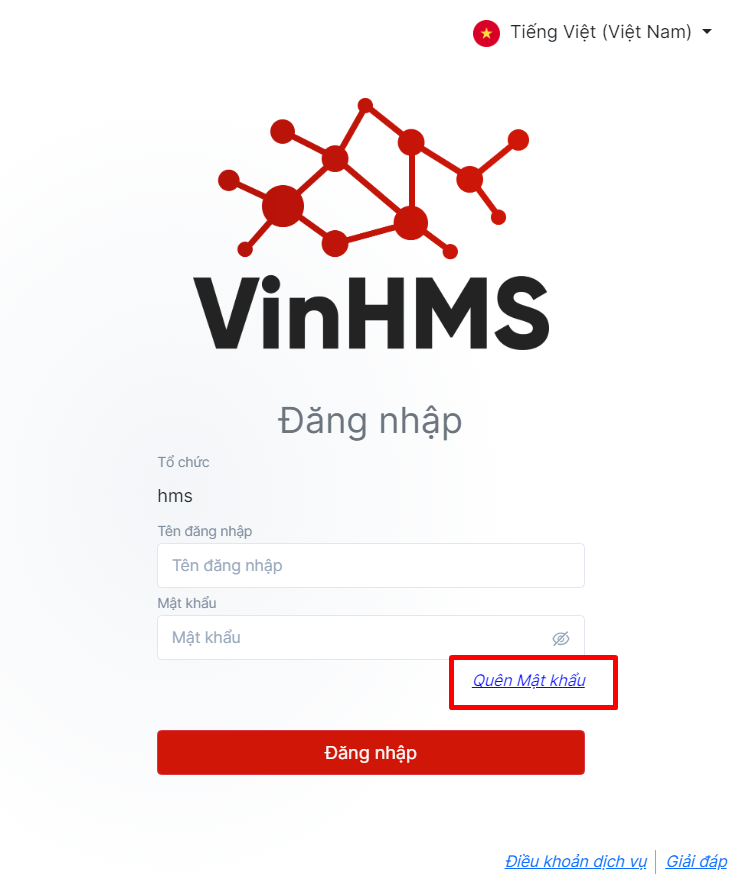 Bước 1: Tại màn hình đăng nhập. Nhấn “Forgot Password/Quên mật khẩu”