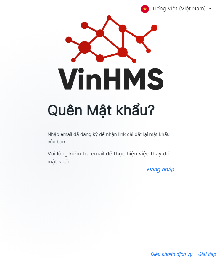 Bước 3: Hệ thống hiển thị thông báo gửi mail yêu cầu thành công.