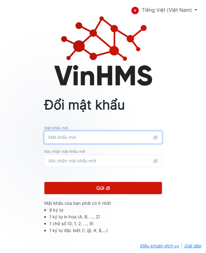 Bước 4: Hệ thống sẽ gửi link đổi mật khẩu tới email. Nhập mật khẩu mới để thực hiện đổi mật khẩu
