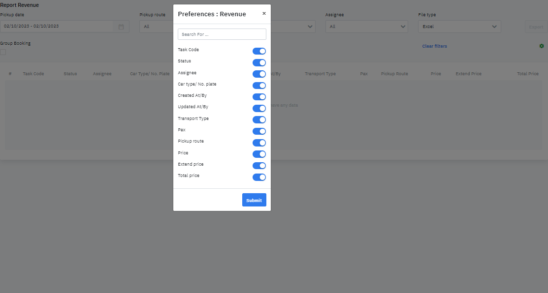 Revenue (Báo cáo doanh thu vận chuyển)