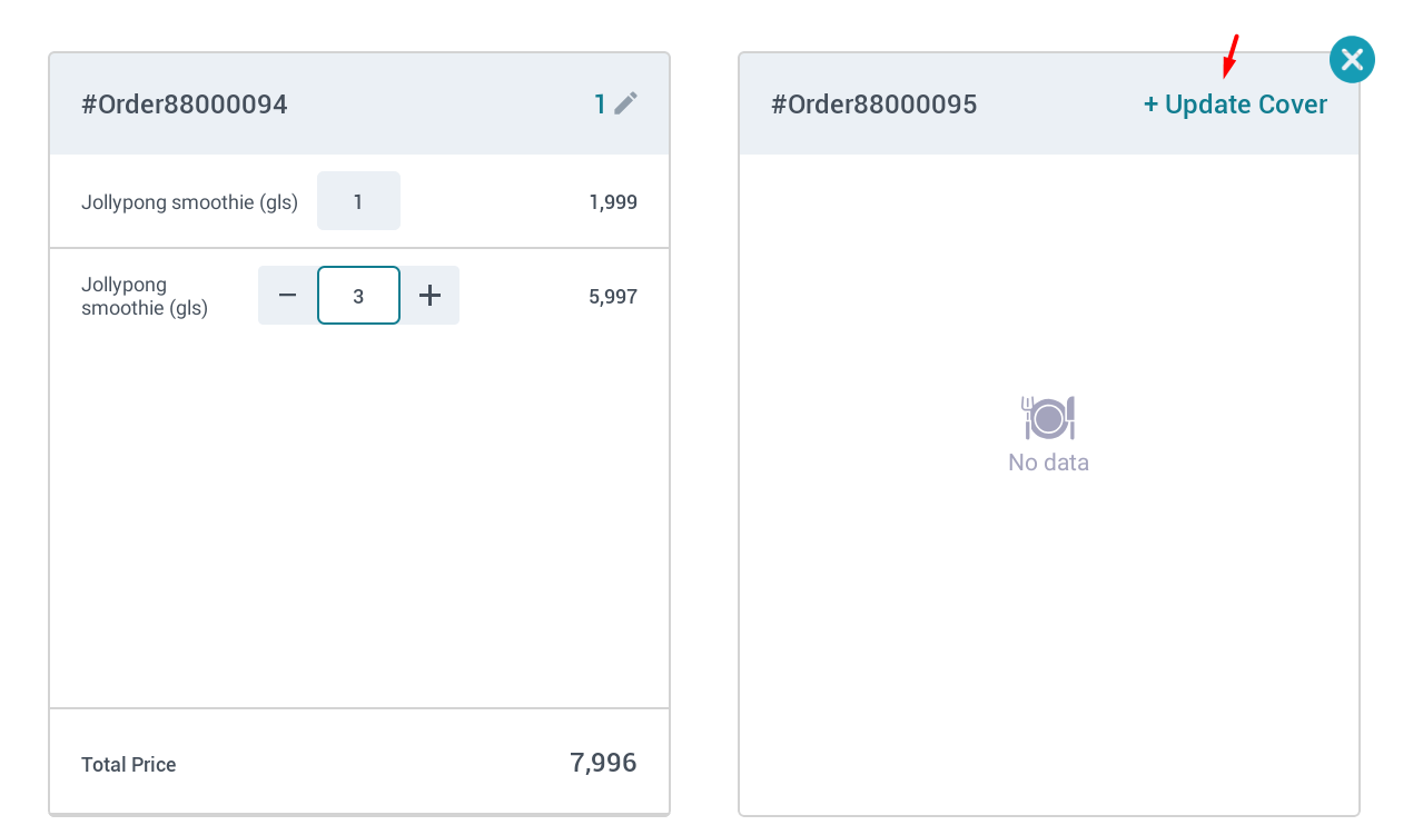 1/ Split Evenly : Tách đều đơn hàng ![]() Các nút chức năng thao tác tách đơn hàng (1) Update Cover: Cập nhật số khách cho từng đơn được tách (2) Reset All: Xóa hết tất cả các thao tác trong màn hình tách đơn hàng này (3) Undo Split: Quay lại thao tác trước đó (4) Close: Xác nhận không thực hiện tách đơn hàng (5) Apply: Xác nhận thực hiện tách đơn hàng Chọn (Add New) mở một đơn hàng mới ![]()