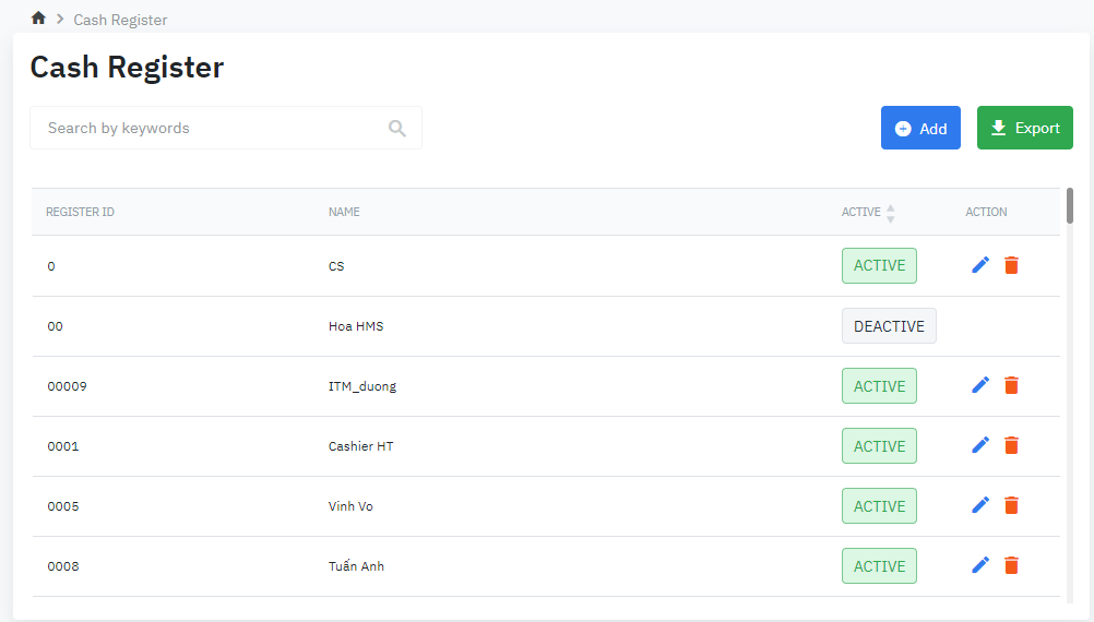 Thêm mới một mã thu ngânNhấn “Add” để thêm mới thông tin mã thu ngân ![]()