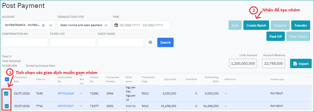 Tạo nhóm giao dịch công nợ (Create Batch) |