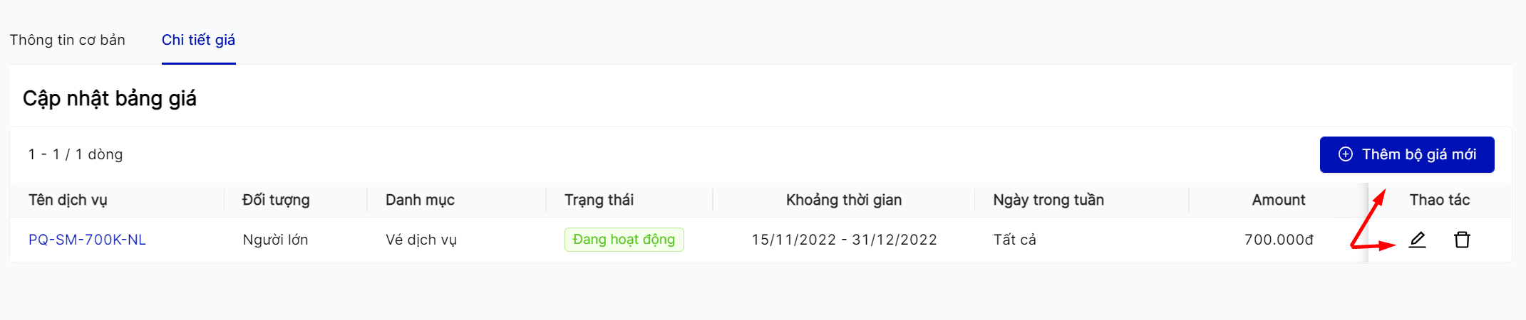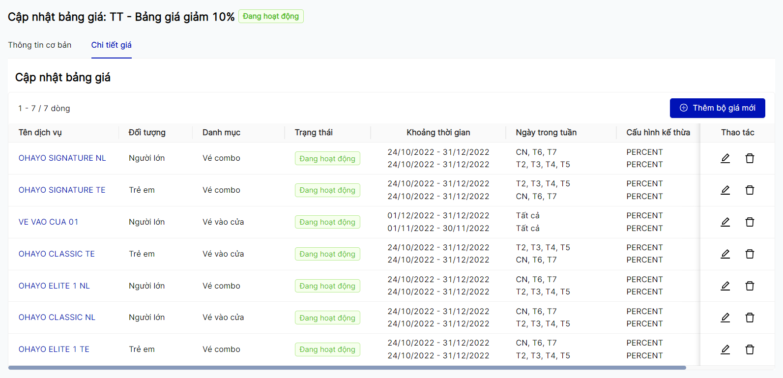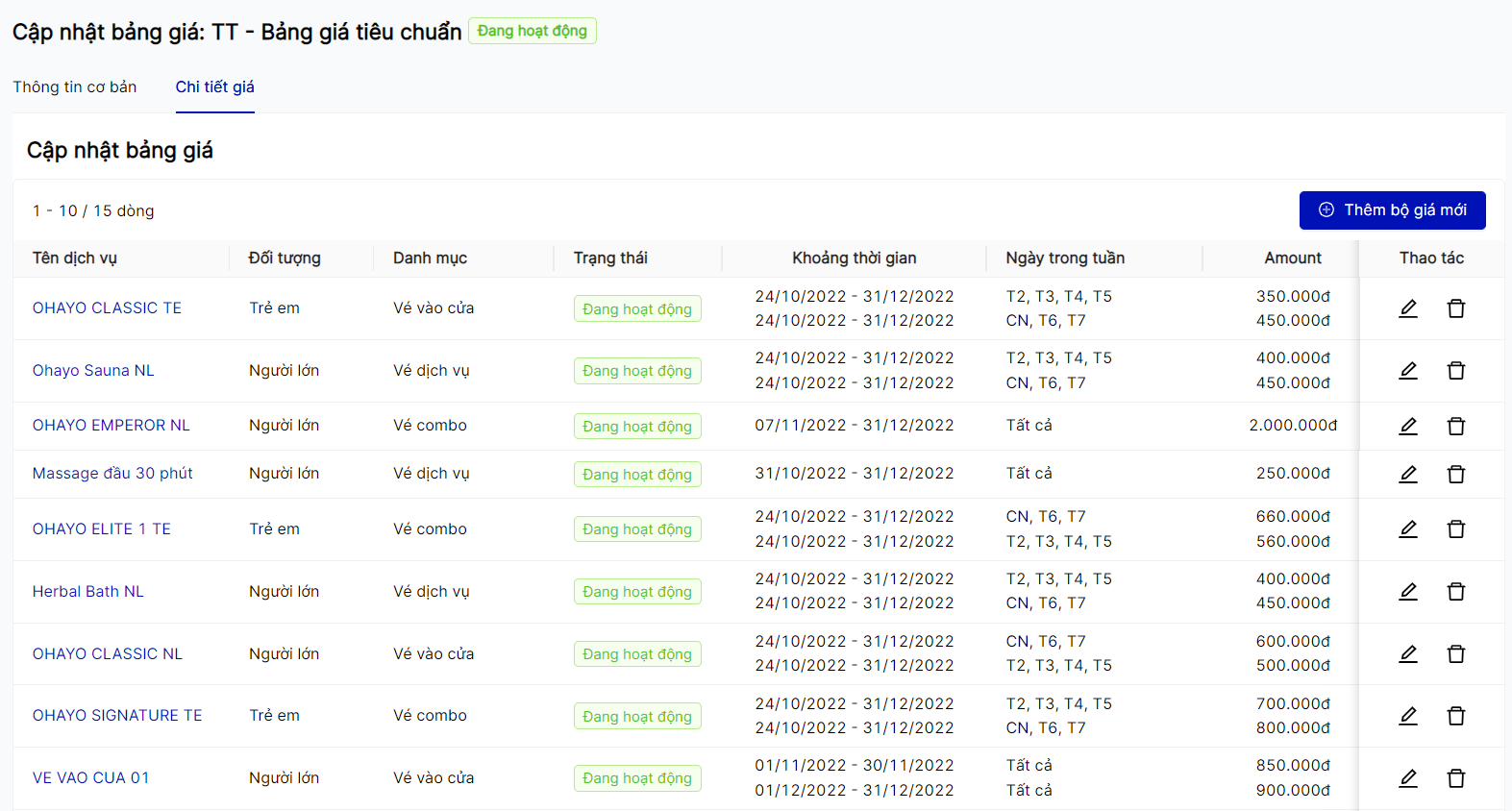 Xem thông tin chi tiết về bảng giá và cập nhật các chính sách chi tiết giá của từng dịch vụ được bán |