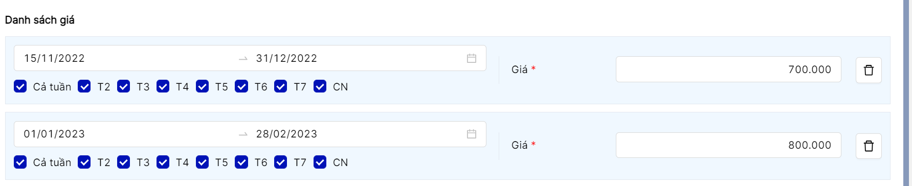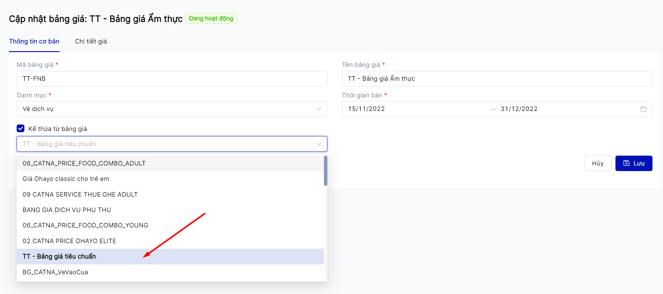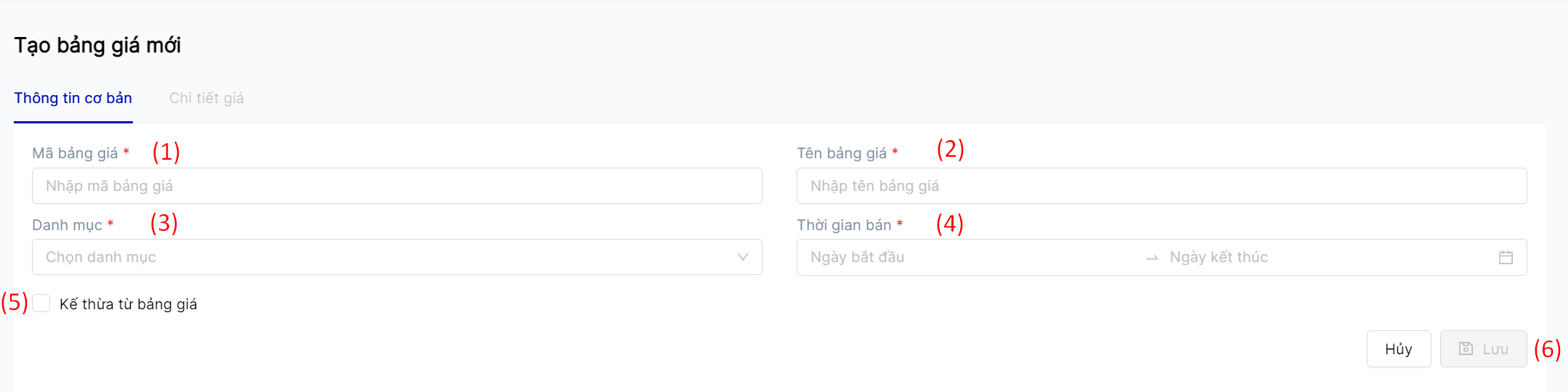 Trường hợp tạo bảng giá mới hoặc chỉnh sửa bảng giá được kế thừa từ bảng giá có sẵn