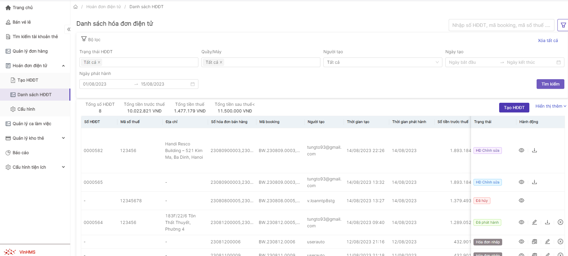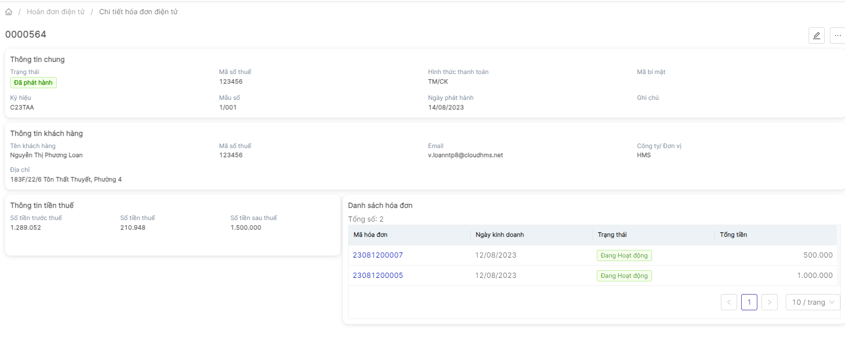 Danh sách hóa đơn điện tử |
