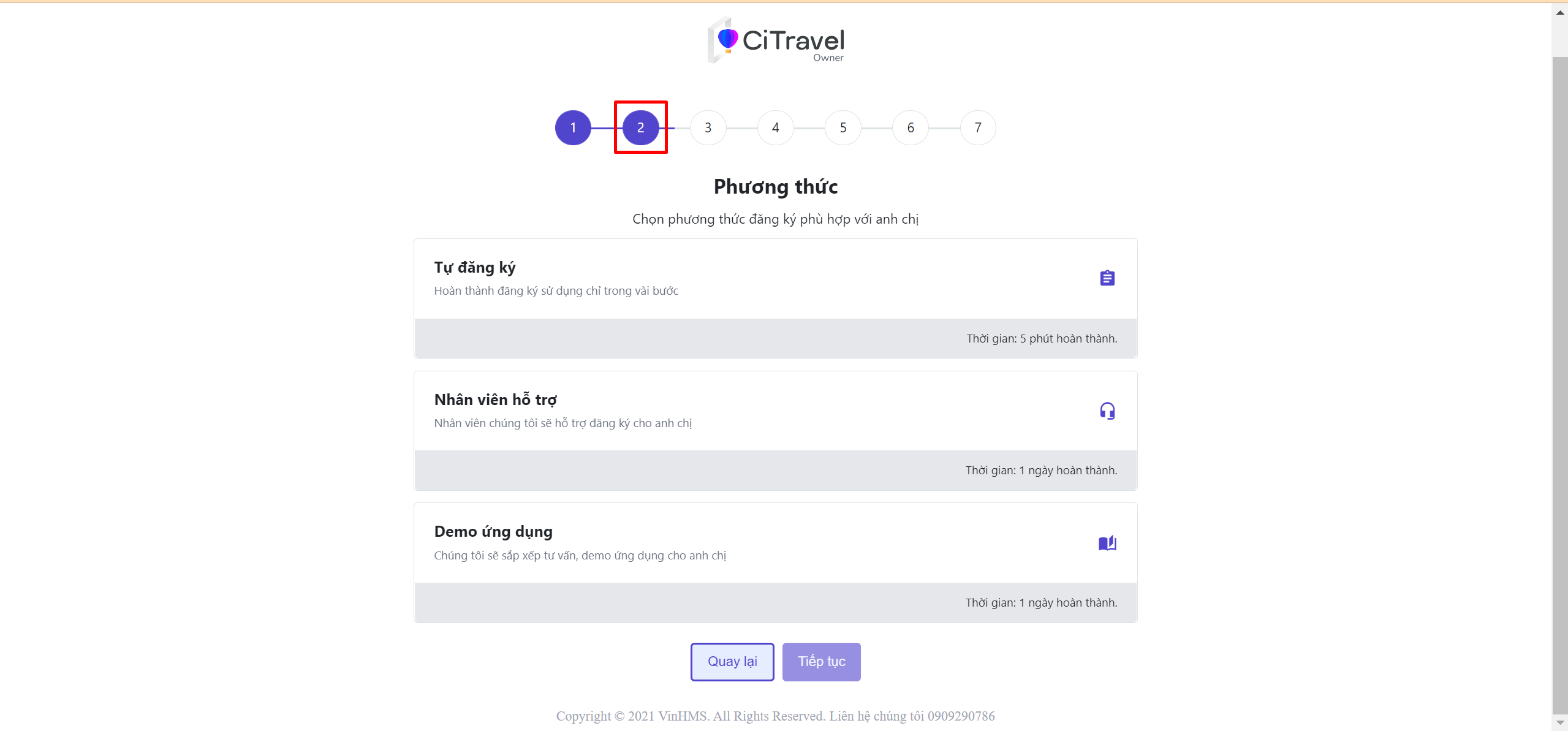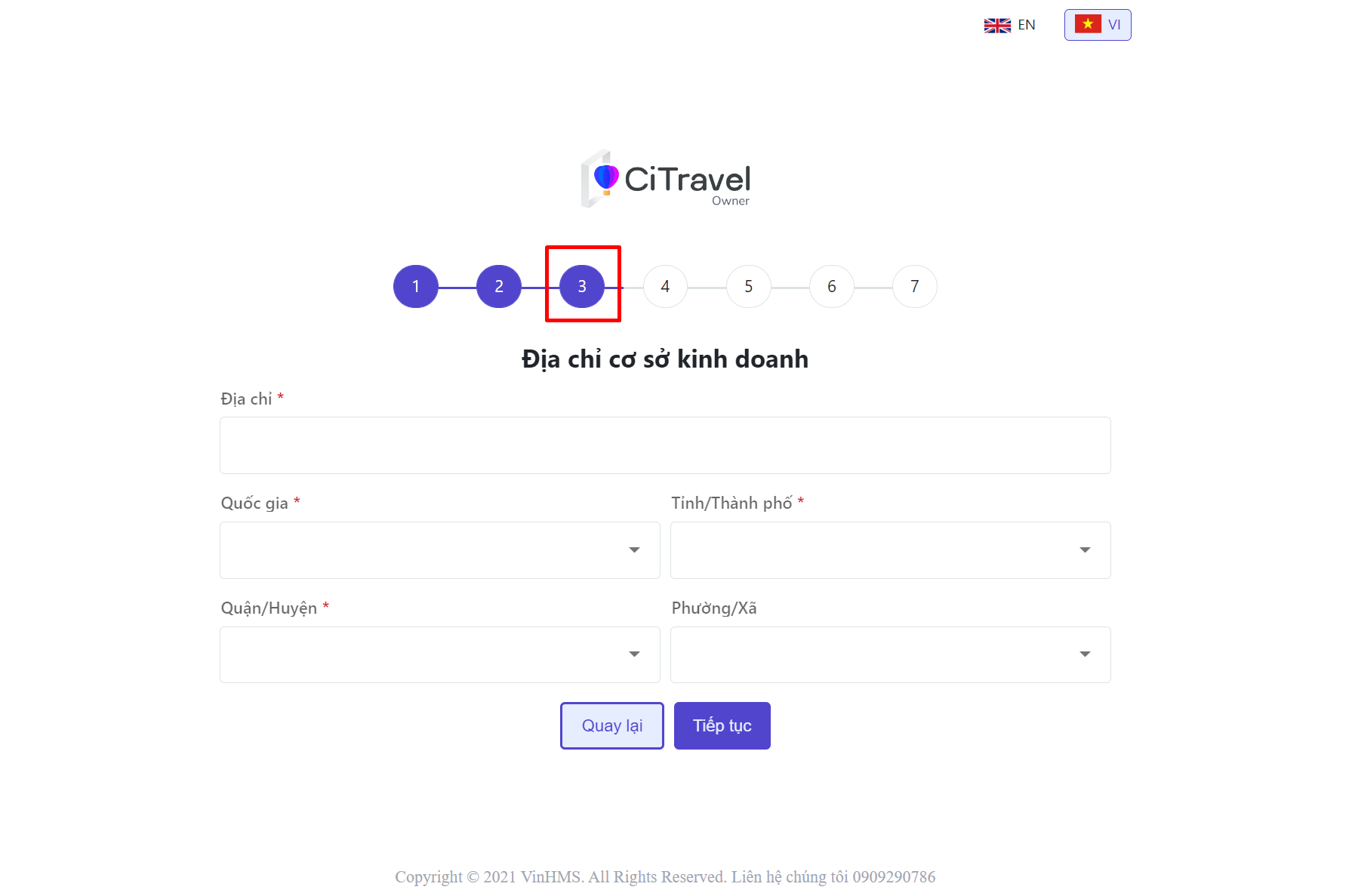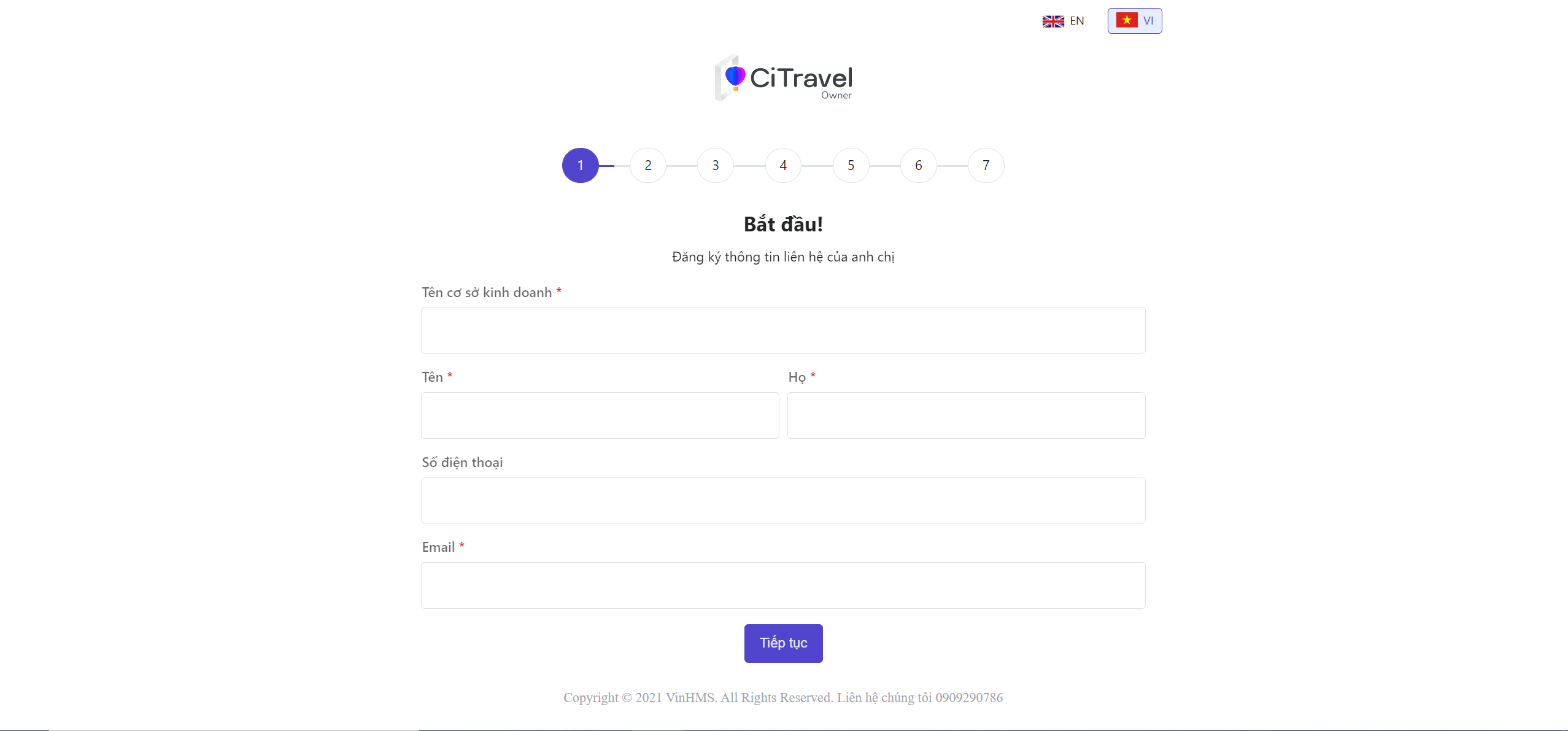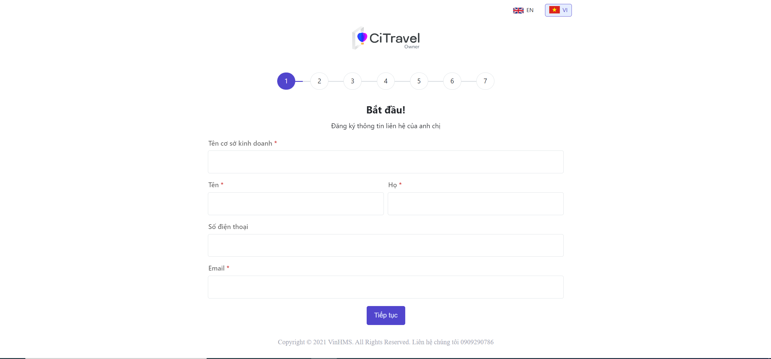 Trang đăng ký dành cho chủ khách sạn đăng ký sử dụng hệ thống CiTravel, giải pháp chuyển đổi số dành cho các khách sạn vừa và nhỏ nhằm tối ưu hoá vận hành và thúc đẩy tăng trưởng đặt phòng qua các kênh phân phối trực tuyến. |