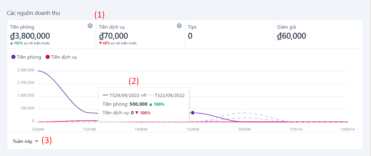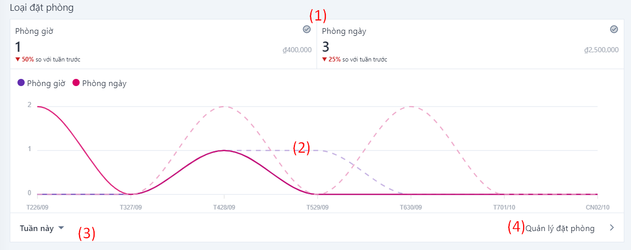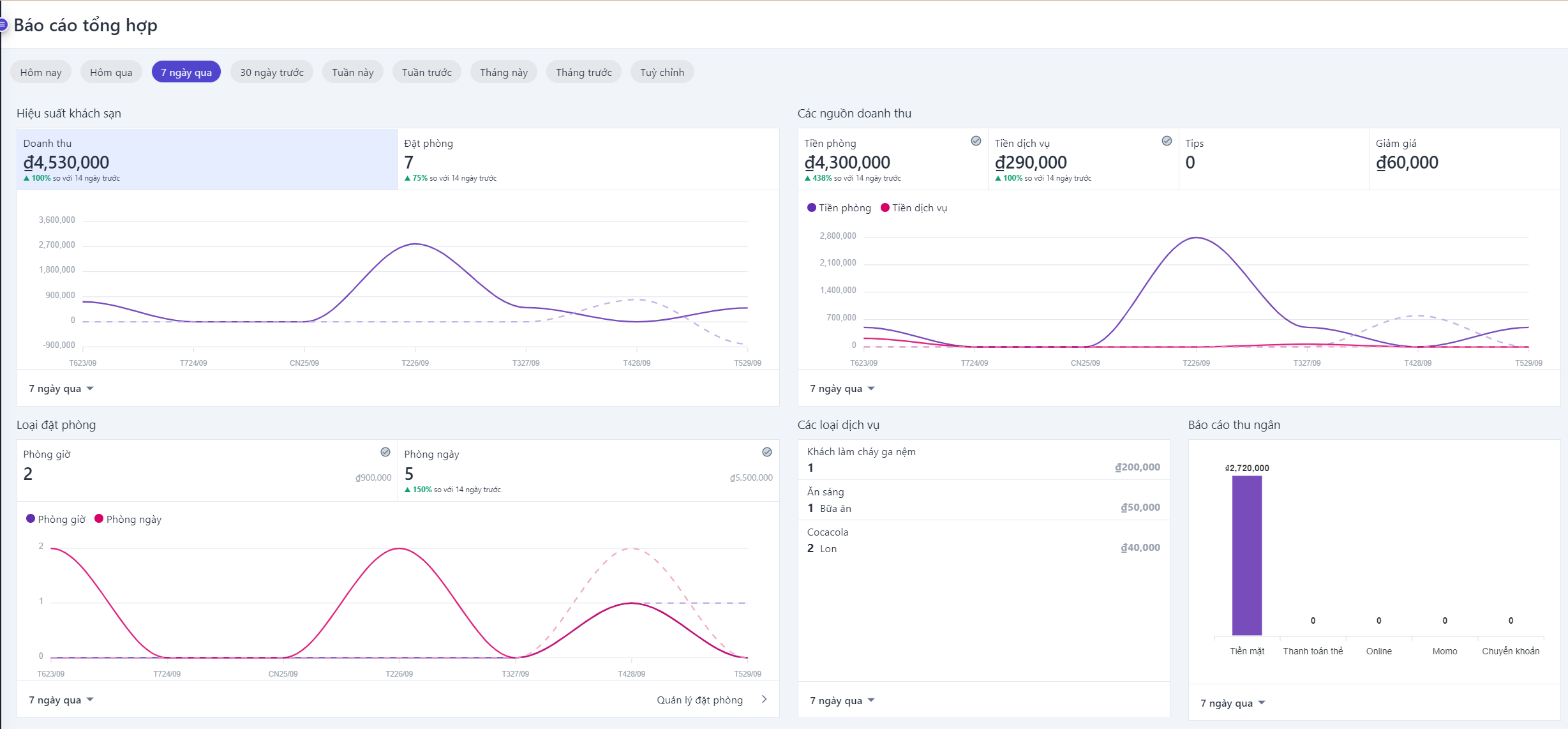 Màn hình tổng hợp các báo cáo quản lý của cơ sở lưu trú như: