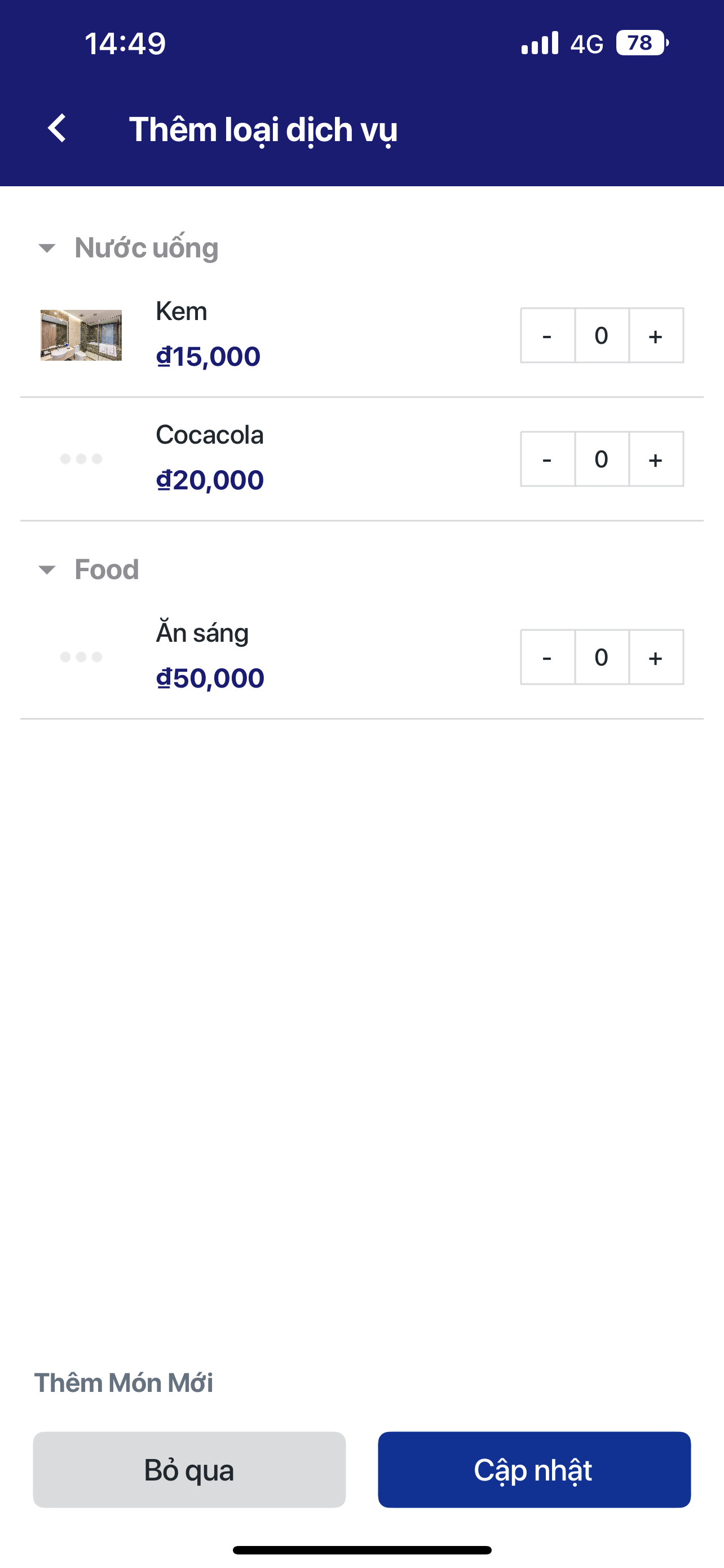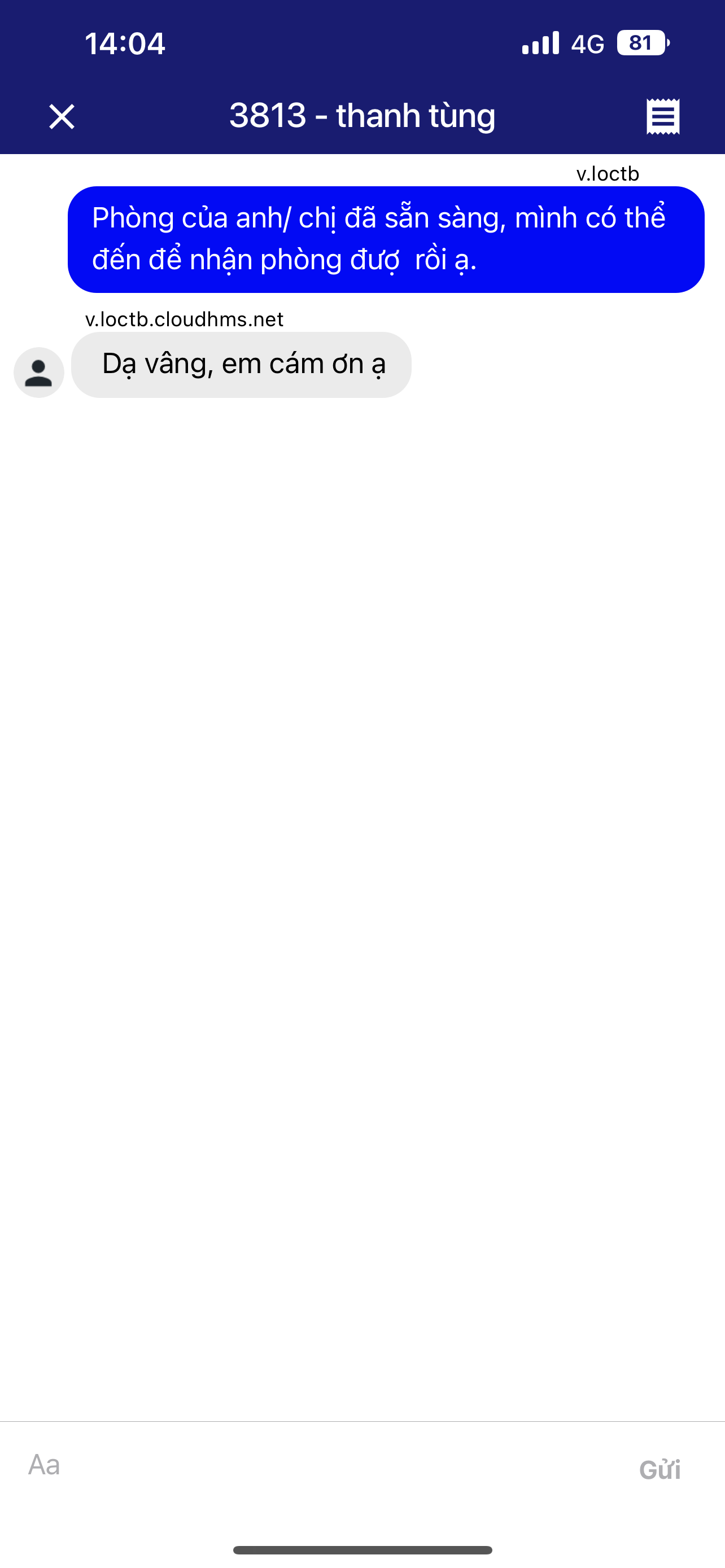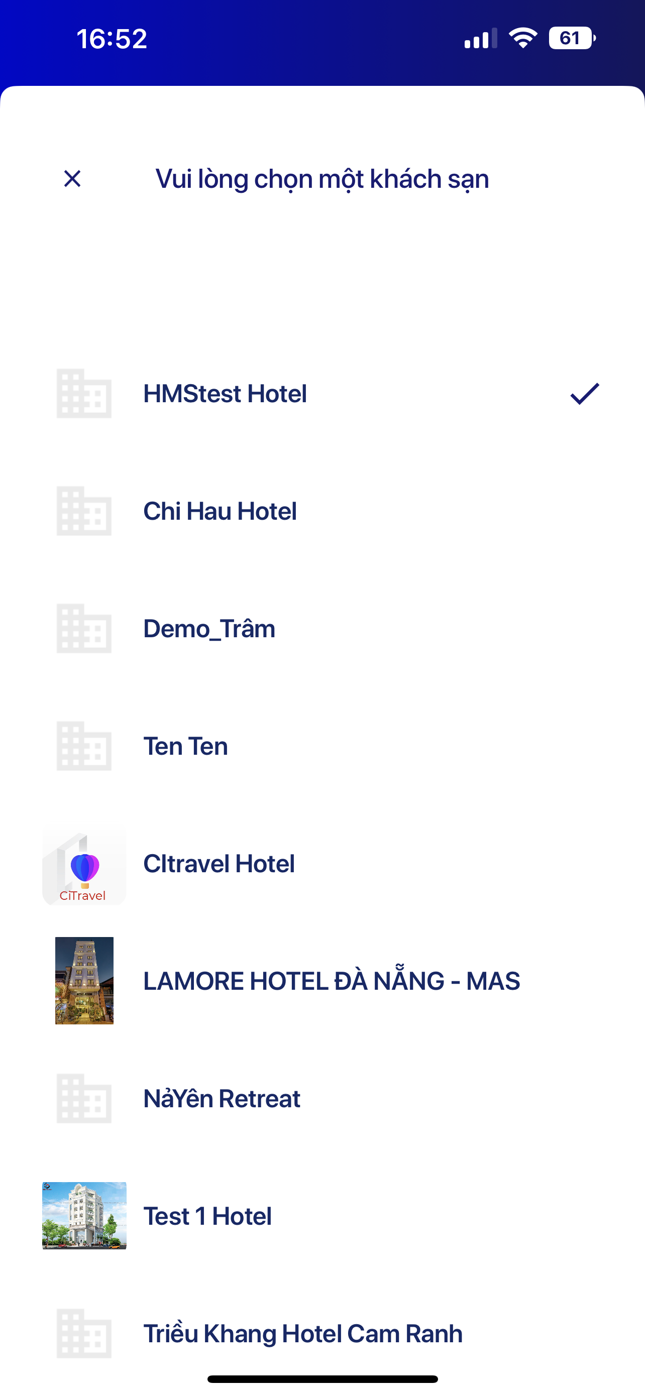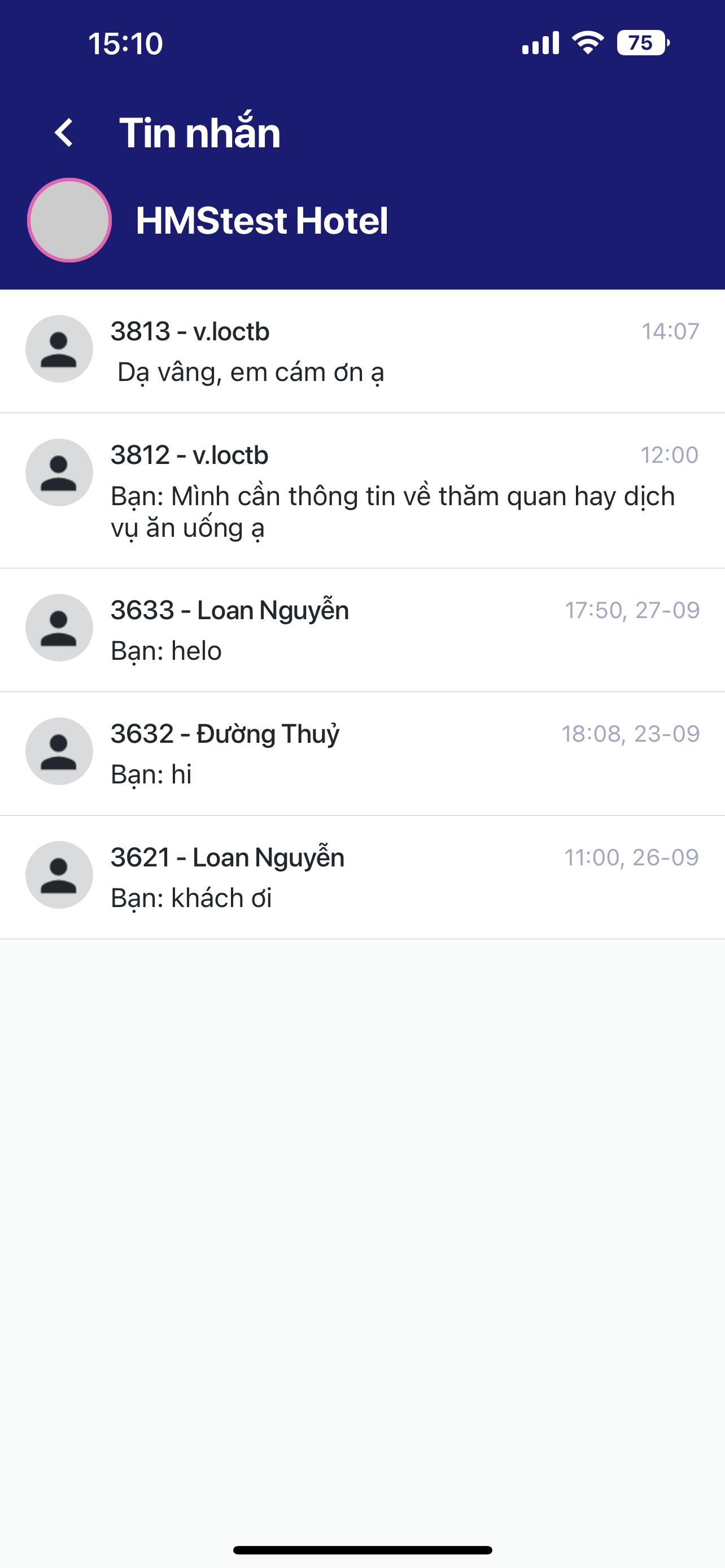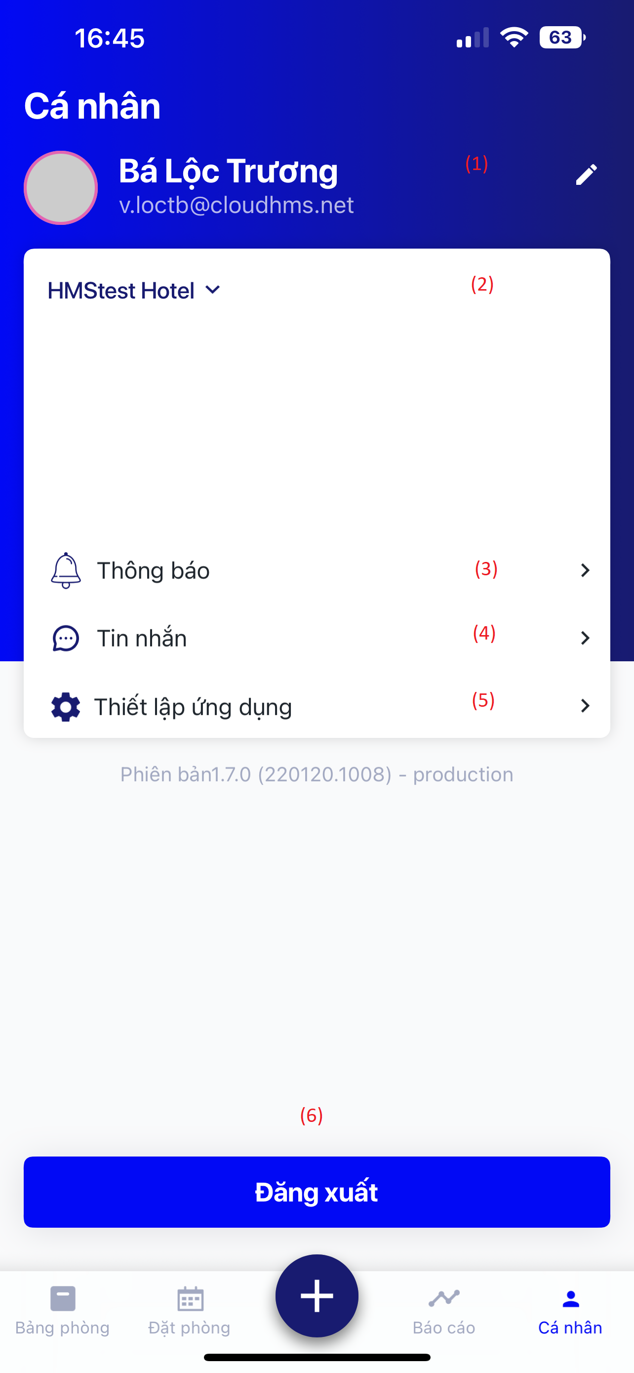 ![]() (1) Thêm Giao Dịch: các giao dịch phát sinh trong quá trình lưu trú tại khách sạn có thêm thêm chi tiết tại đây để khách có thể thanh toán ![]() (2) Trả Phòng: Nếu không sử dụng thêm dịch vụ nào tại cơ sở lưu trú chọn “Cập Nhật” ![]() Màn hình sẽ chuyển sang “Hóa Đơn Chi Tiết” ![]() Chọn “Tiếp tục” để chuyển sang màn hình “Chọn phương thức thanh toán” ![]() Chọn “Thanh Toán” để hoàn tất quy trình trả phòng: ![]() (9) Hủy đặt phòng: Chọn “Hủy Đặt Phòng” và “Xác Nhận” để hủy 1 đặt phòng ![]() ![]() (4) Tin nhắn: hiển thị toàn bộ tin nhắn của khách hàng tại đây, chủ khách sạn có thể kiểm tra và thông tin đến khách hàng kịp thời ![]() (5) Thiết lập Ứng dụng: ![]() Đăng nhập với FaceID Cài đặt thông báo Ngôn Ngữ: Tiếng Anh - Tiếng Việt Xóa bộ nhớ tạm |