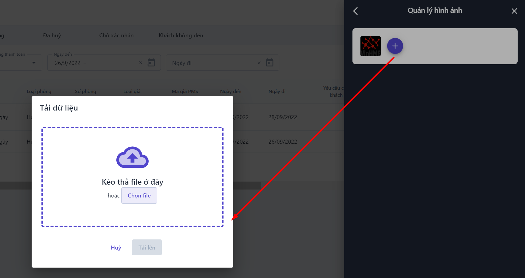2. Quản lý hình ảnh: Chức năng này thường được sử dụng cho các đặt phòng lưu trú theo tháng, người dùng sẽ cập nhật hình ảnh phòng khách lưu trú trước khi khách nhận phòng để lưu lại hình ảnh ban đầu của phòng, tránh trường hợp khách hàng lưu trú trong thời gian dài sẽ làm mất hoặc hư hỏng đồ đạc trong quá trình lưu trú.
