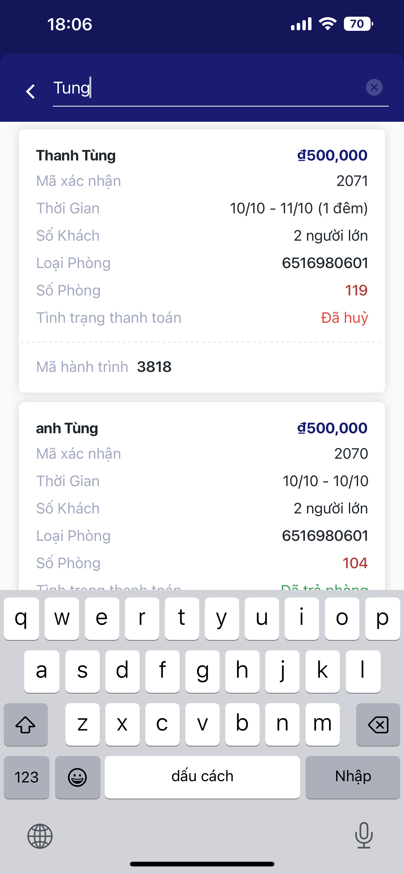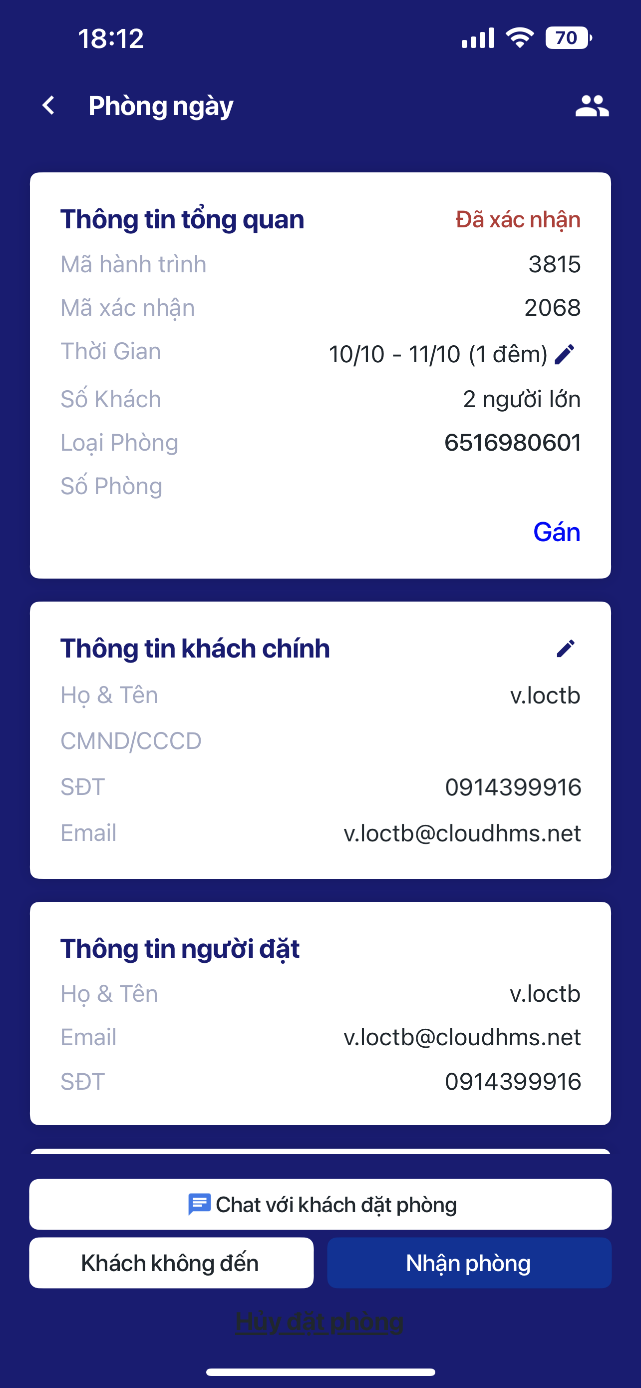 Nội dung các trường thông tin trên màn hình đặt phòng ![]()