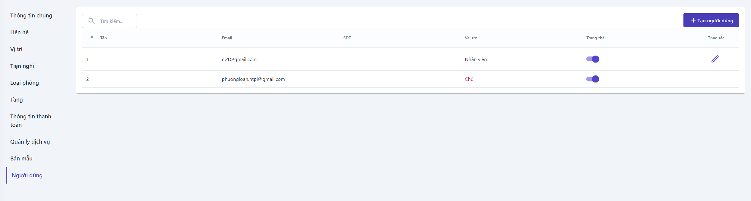 https://app.ciowner.com/settingsĐăng nhập - Cài đặt - Cài đặt khách sạn - Người dùng |
