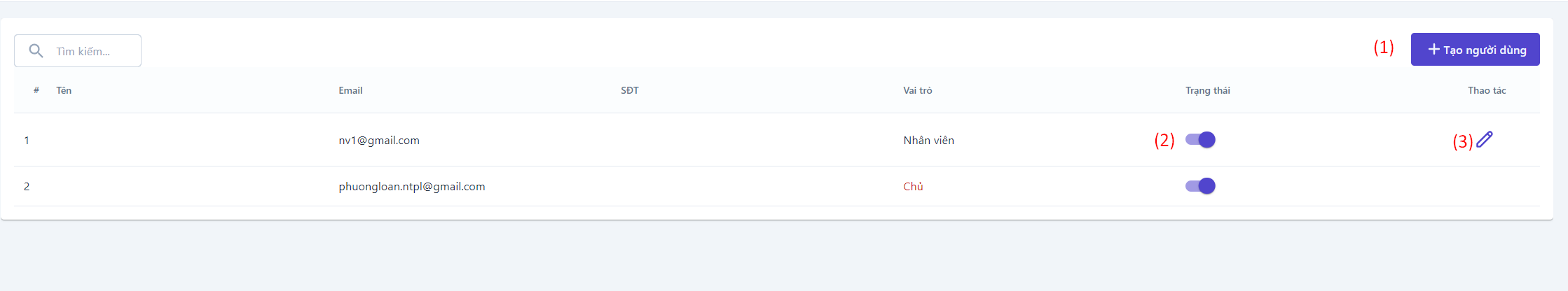 ![]() (1) Tạo người dùng: Chọn để thực hiện tạo tài khoản cho người dùng ![]()