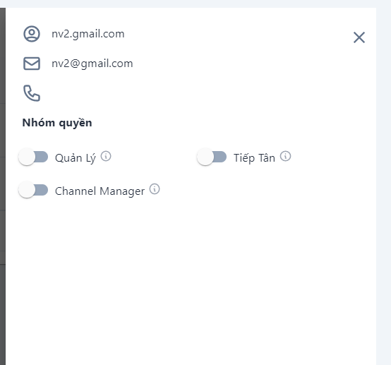 (2) Bật/Tắt thanh trạng thái để Mở/ Khóa tài khoản (3) Phân quyền: Chọn biểu tượng :edit: để thực hiện chỉnh sửa lại phân quyền cho tài khoản |