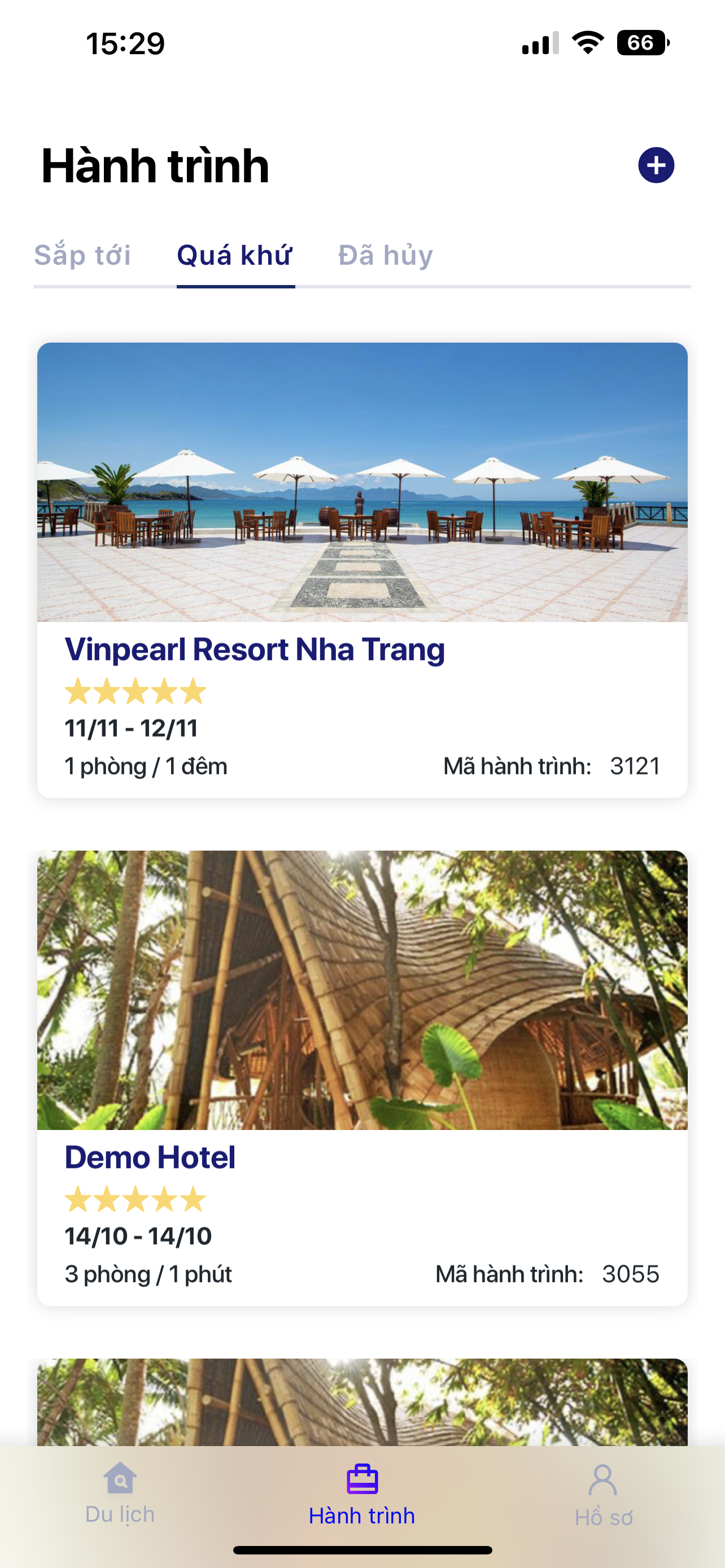 Thông tin đặt phòng “Quá khứ” trong App CiTravel |
